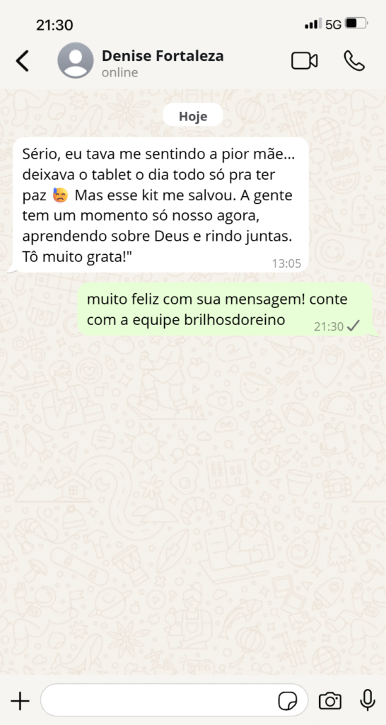 Seu filho não sabe expressar sentimentos ou orar sozinho? Com o Diário com Deus, ele desenvolve gratidão, fé e autonomia espiritual em apenas 7 dias. Uma ferramenta lúdica que cria o hábito de conversar com Deus de forma simples, divertida e diária!